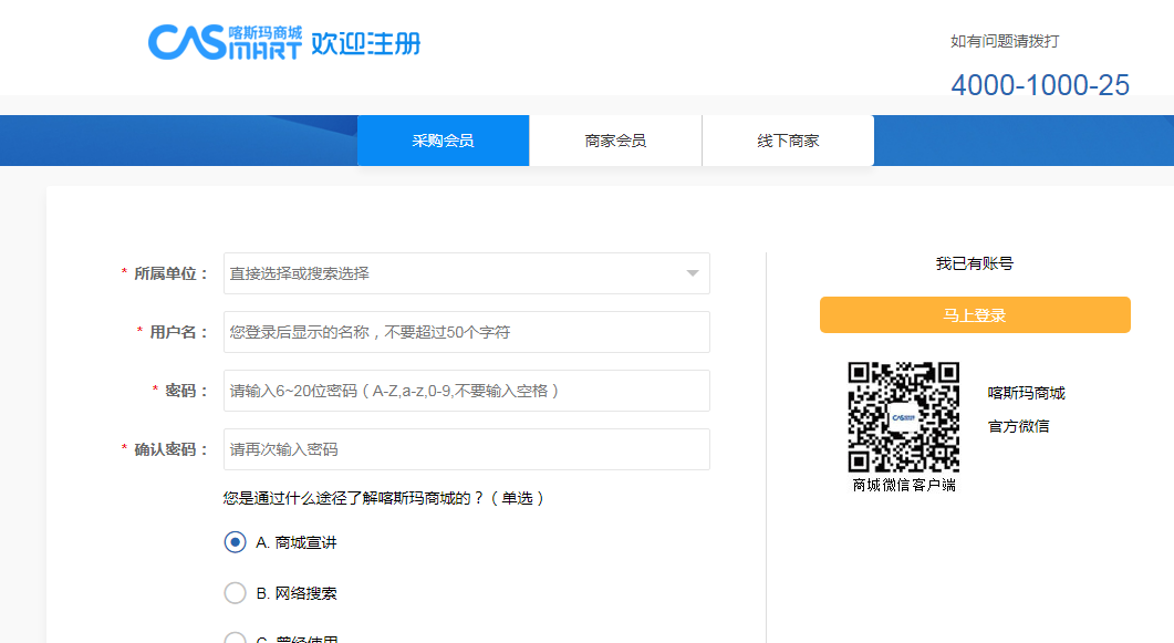 注冊(cè)網(wǎng)址:https://member.casmart.com.cn/member/register