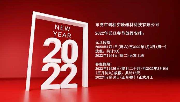東莞市譜標(biāo)實(shí)驗(yàn)器材科技有限公司2022元旦春節(jié)放假安排如下:
