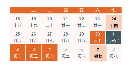 4月30日~5月4日 放假5天