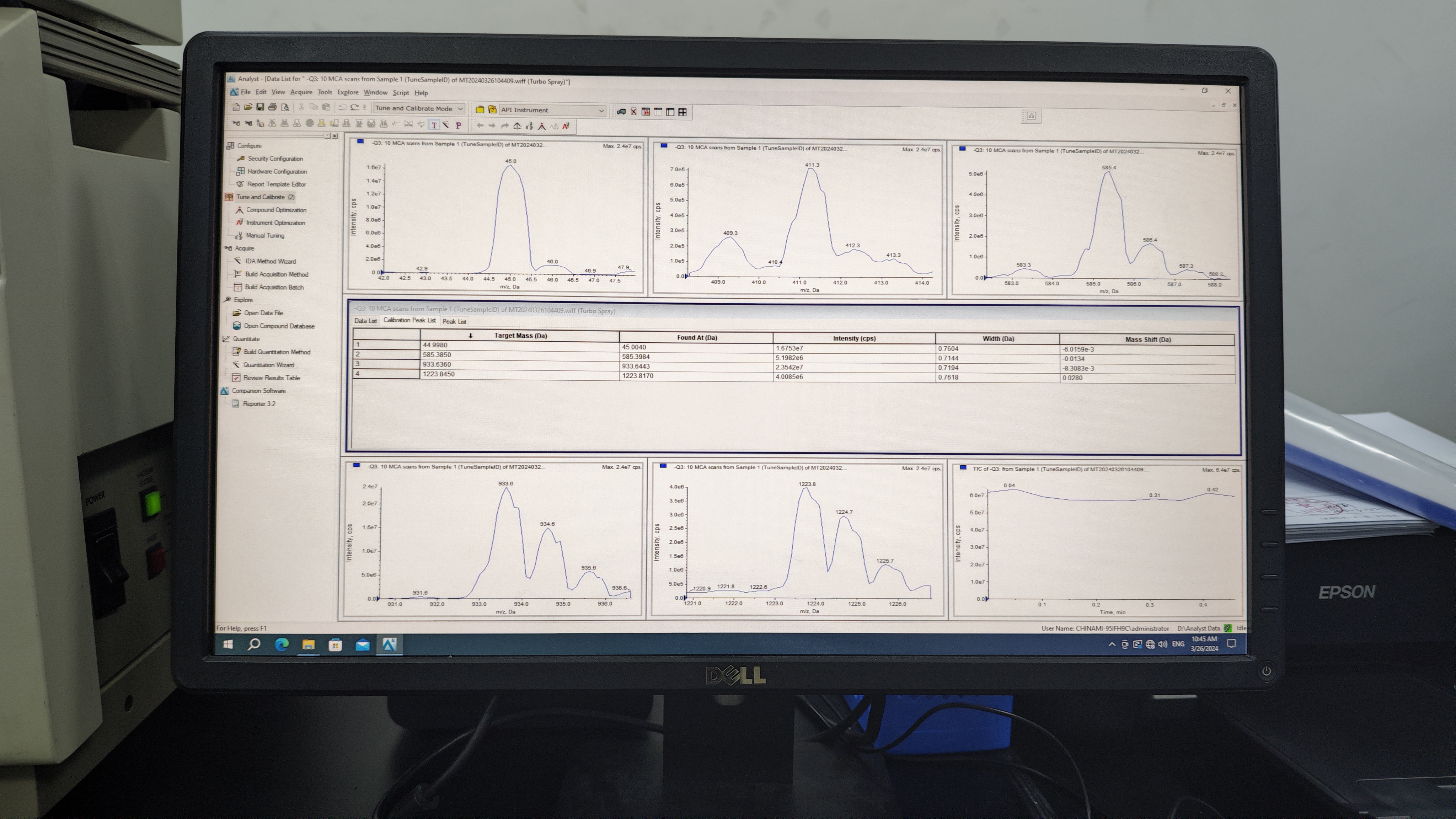 以下是工程師在裝機完成后,對儀器分別進行調(diào)諧和進樣所出譜圖。目的是為了優(yōu)化和驗證質(zhì)譜儀的性能,確保其能夠滿足不同分析方法的要求,從而提供準(zhǔn)確的分析結(jié)果。