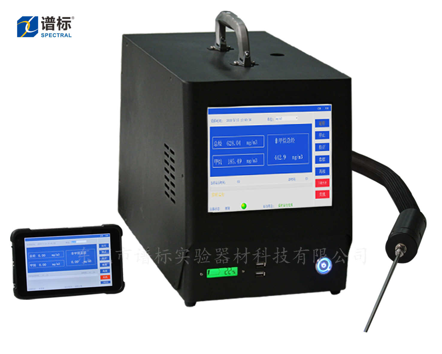 儀器采用探頭和伴熱管線采樣,色譜柱分離,氫火焰化離子化檢測器定性和定量。
