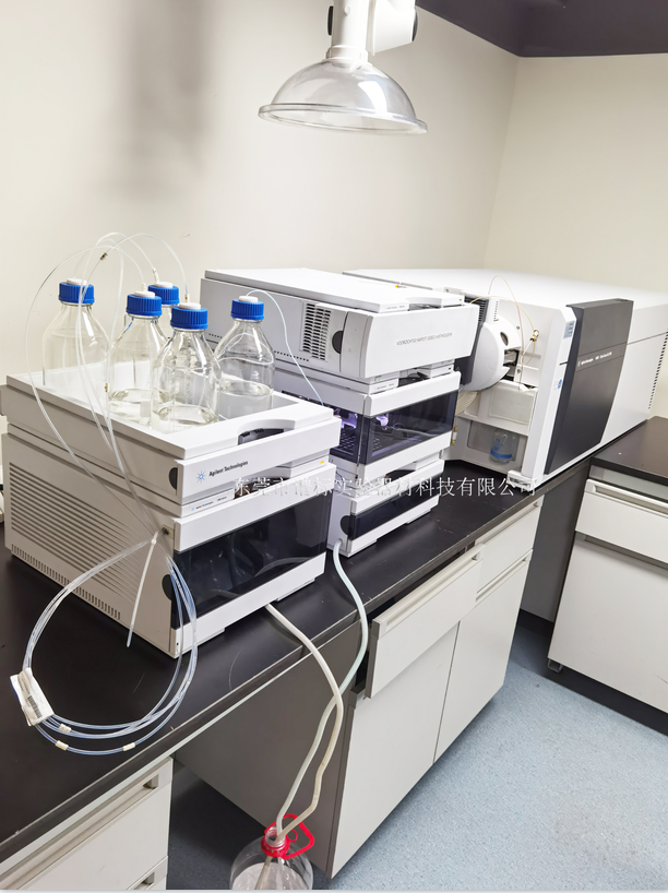 1,安捷倫三重四級桿液相色譜質(zhì)譜聯(lián)用儀LCMSMS 6764+1290 串聯(lián)原理:以液相色譜作為分離系統(tǒng),質(zhì)譜為檢測系統(tǒng)。樣品在質(zhì)譜部分和流動相分離,被離子化后,經(jīng)質(zhì)譜的質(zhì)量分析器將離子碎片按質(zhì)量數(shù)分開,經(jīng)檢測器得到質(zhì)譜圖。