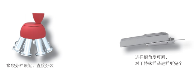● 可配置接袋分樣頂冠,直接分裝