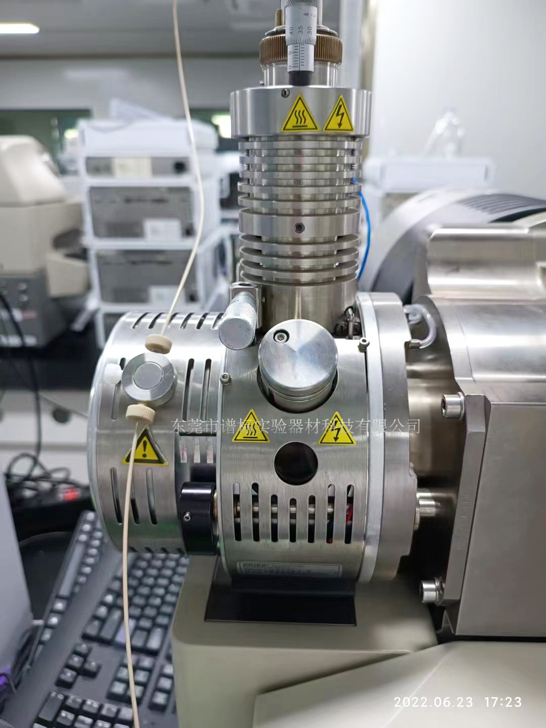 2022年6月,譜標(biāo)工程師在廣州某檢測(cè)公司維修AB SCIEX 4000三重四極桿質(zhì)譜儀離子源~離子源(英文名稱:Ion source)是使中性原子或分子電離,并從中引出離子束流的裝置。它是各種類型的離子加速器、質(zhì)譜儀、電磁同位素分離器、離子注入機(jī)、離子束刻蝕裝置、離子推進(jìn)器以及受控聚變裝置中的中性束注入器等設(shè)備的不可缺少的部件。